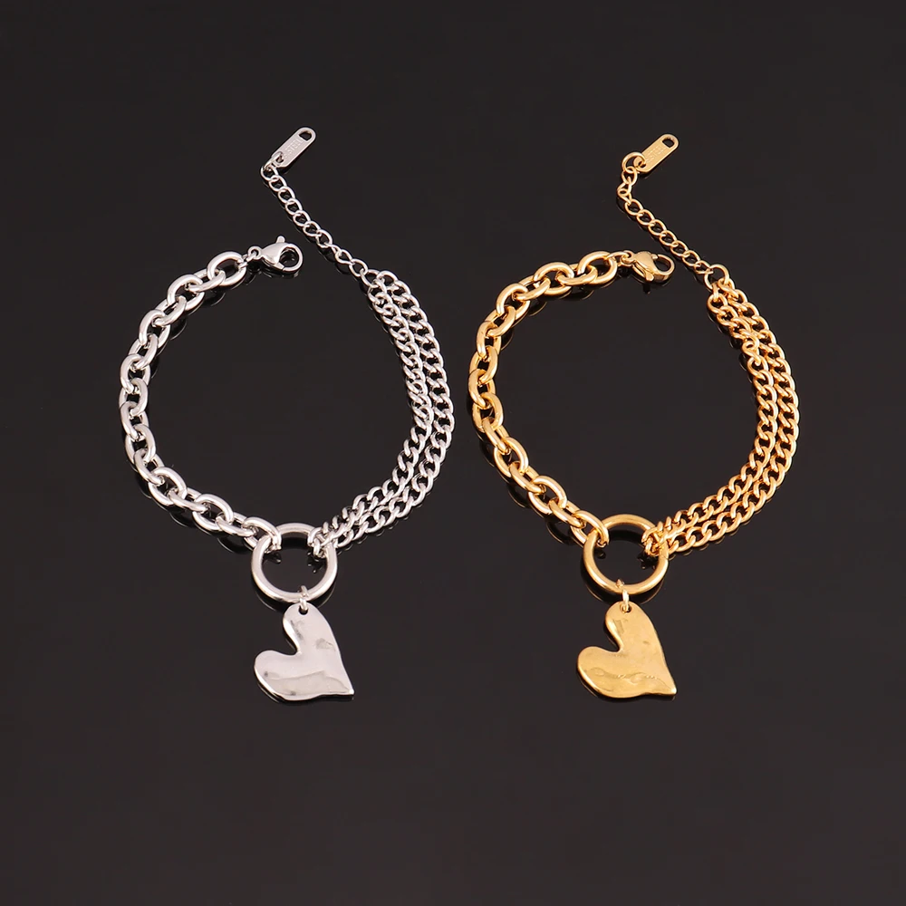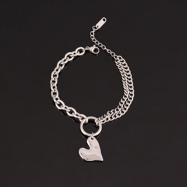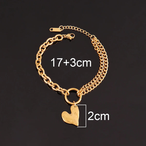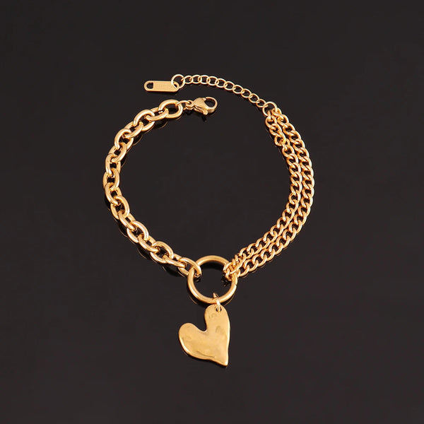 The Golden Heart Layer Bracelet is crafted from durable stainless steel with a refined gold-color finish and elegant double-layer chain design. Featuring a delicate heart pendant, it adds a modern romantic touch to any outfit. Perfect for women who love versatile jewelry that shines from day to night.